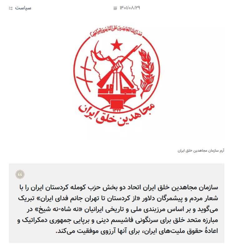 تبریک سازمان مجاهدین به متحد شدن دو بخش حزب کومله